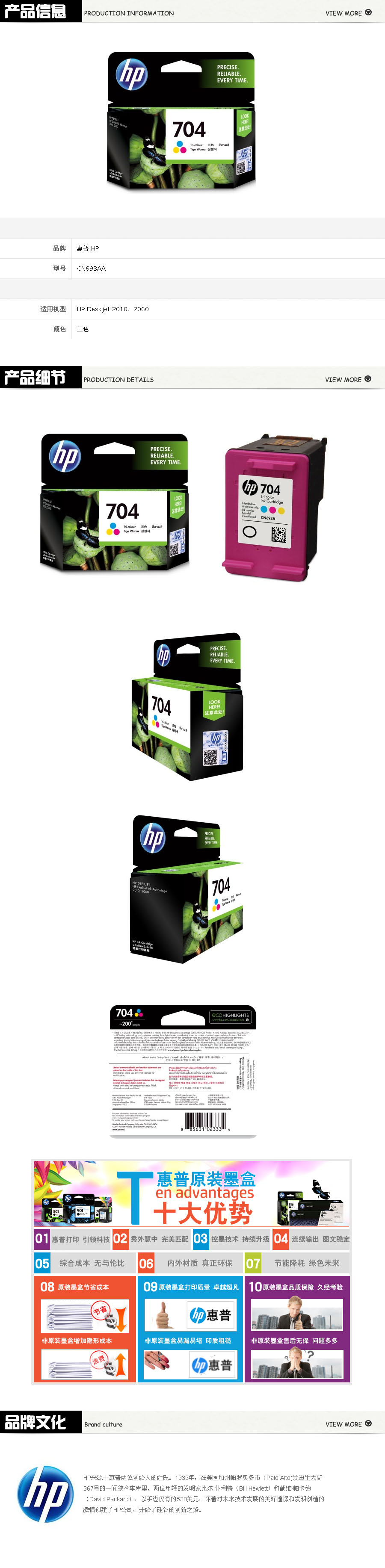 品名:惠普(HP) 彩色墨盒 704(CN693AA) (适用Deskjet 2010 2060 )