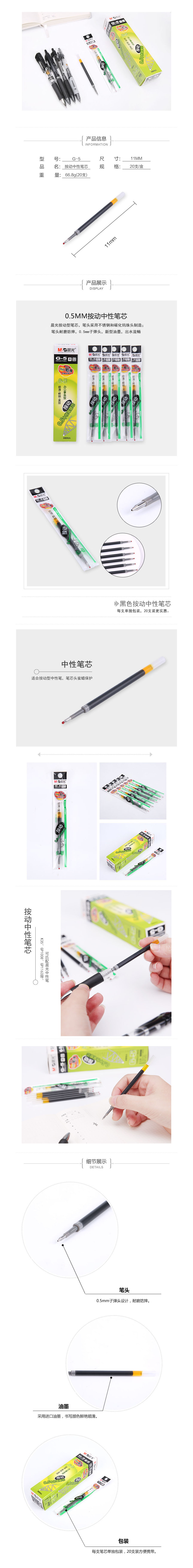 品名:晨光(M&G) 中性笔替芯 G-5 0.5mm 20支/盒 黑色