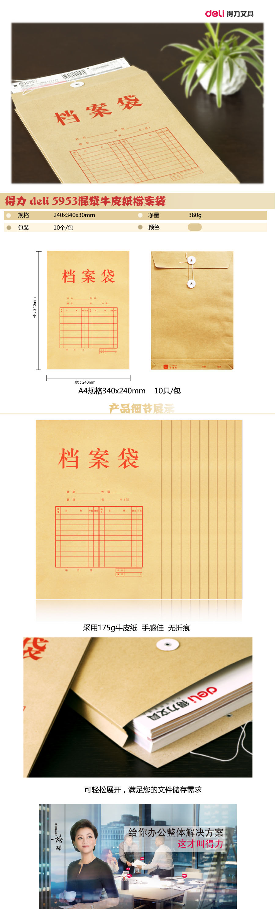 品名:得力(deli) 牛皮纸档案袋 5952 240*340*30mm
