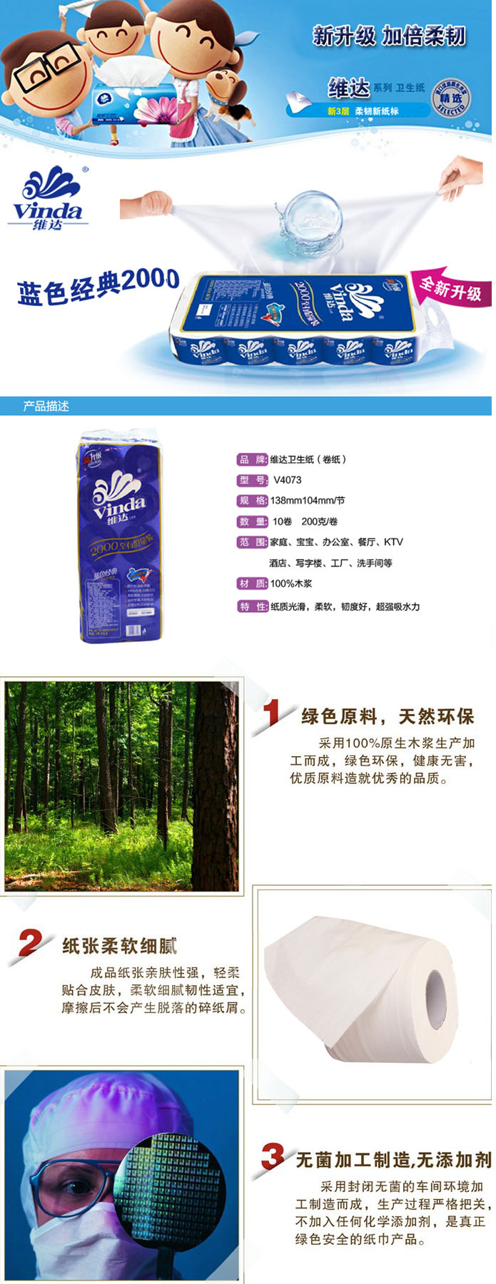 品名:维达 蓝色经典卷纸 V4073 200g*10卷*3层