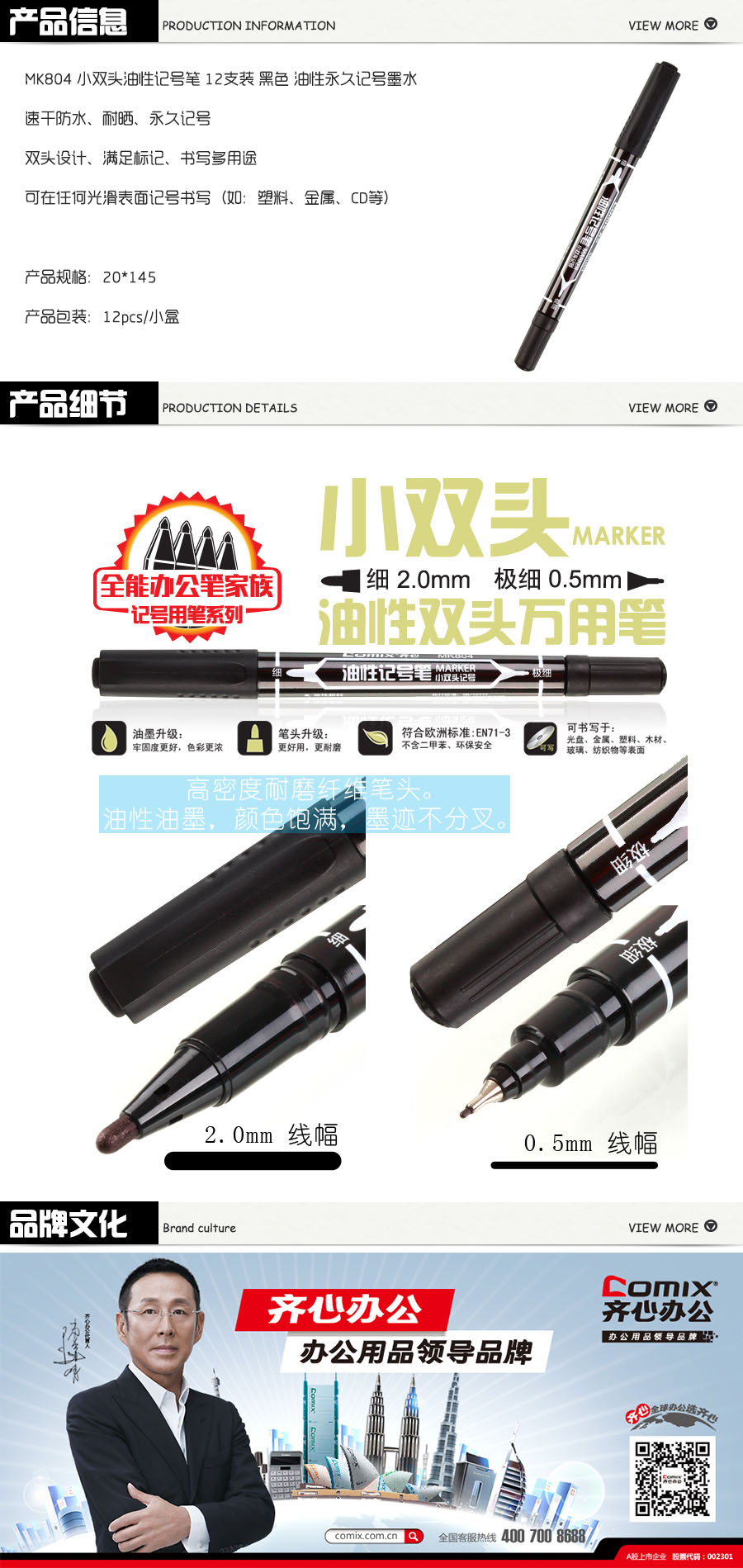 品名:齐心(Comix) 小双头记号笔 MK-804 速干防水 0.5mm 12支装 黑色