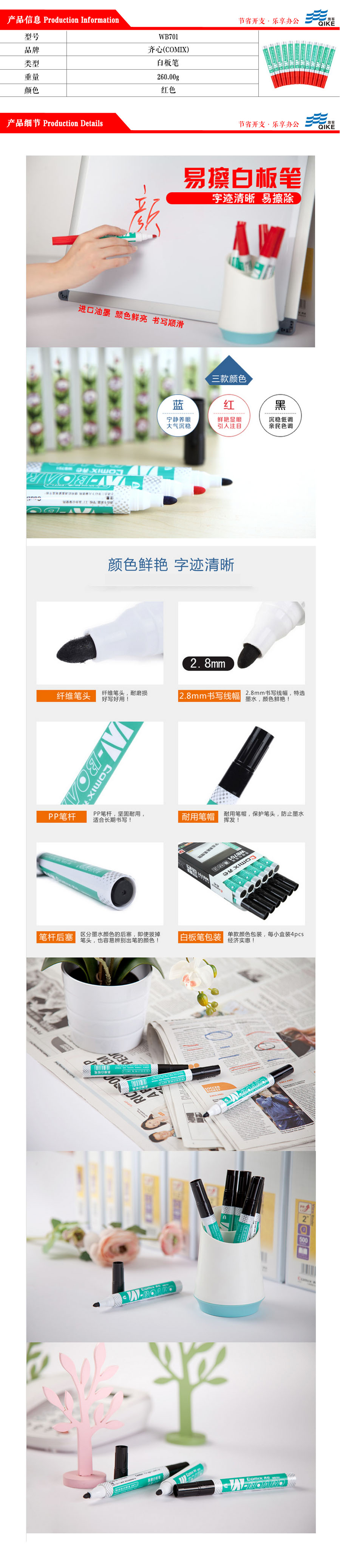 品名:齐心(COMIX) 易擦白板笔 WB701 2.8mm 12支/盒 红色