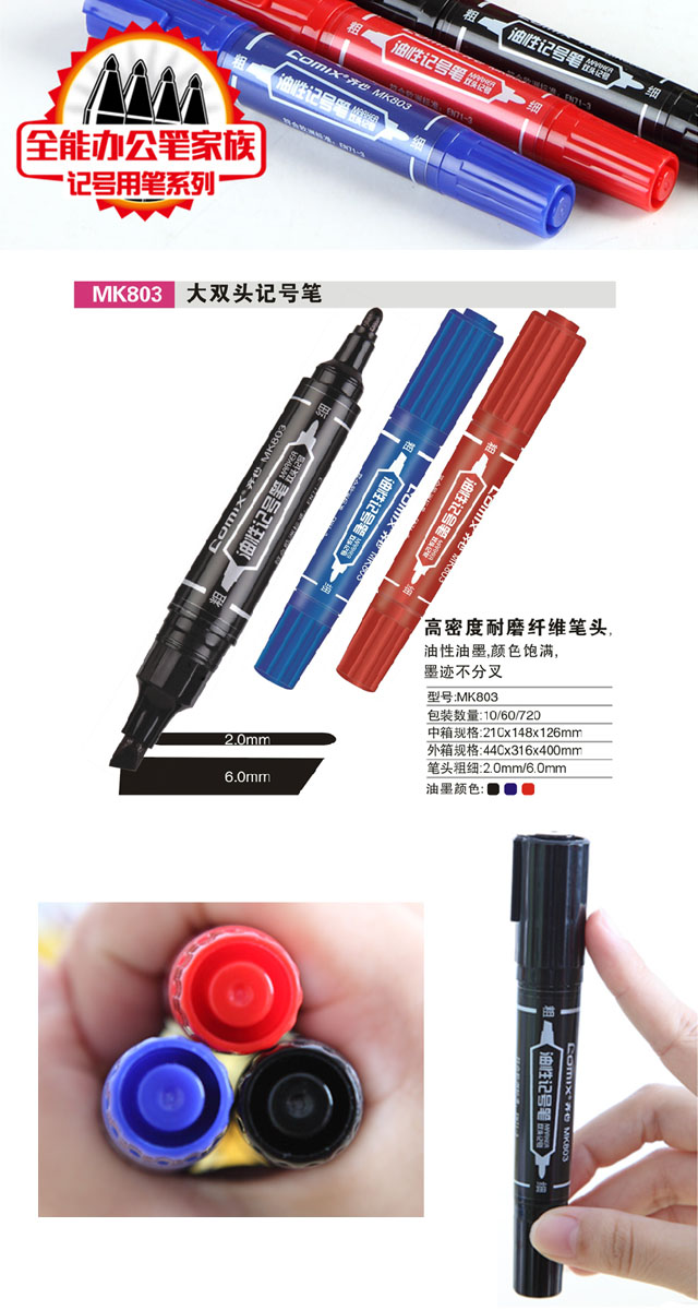 品名:齐心(Comix) 大双头记号笔 MK803 双头 10支/盒 黑色