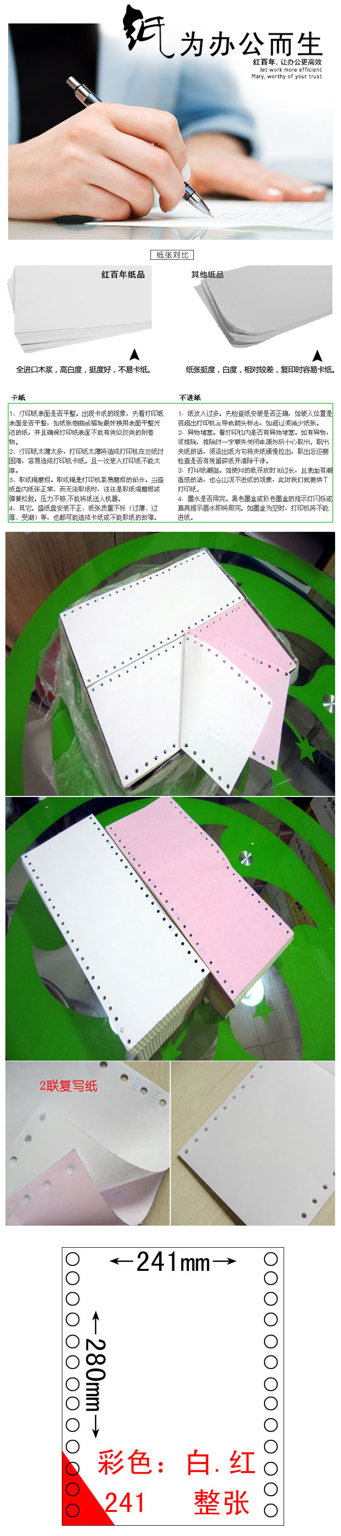 品名:百年 打印纸 241 两联无等分