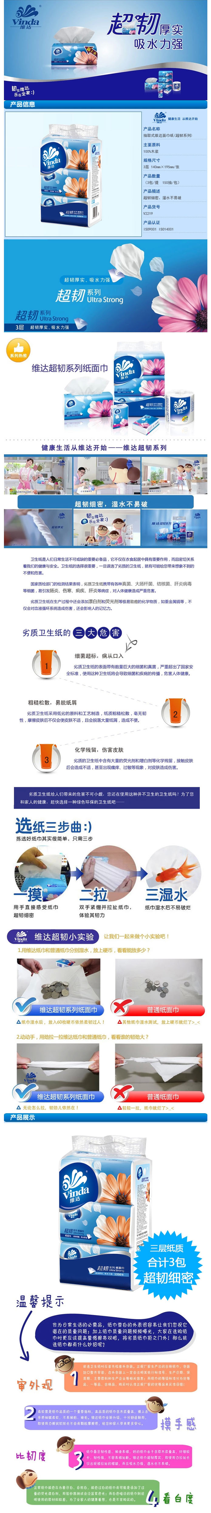 品名:维达(Vinda) 超韧系列柔滑 湿水可用纸巾 V2219 一提3包 150抽3层 140x195m...