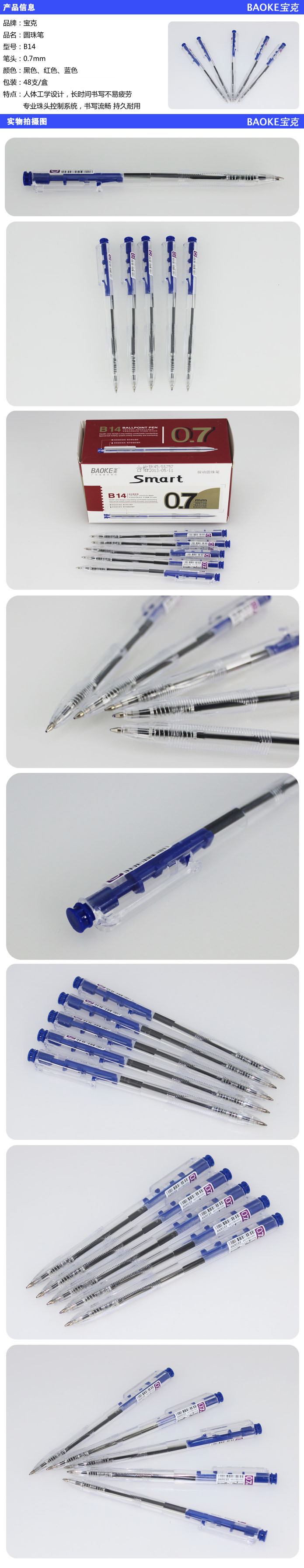 品名:宝克(BAOKE) 按动圆珠笔 B14 0.7mm 48支/盒 蓝色