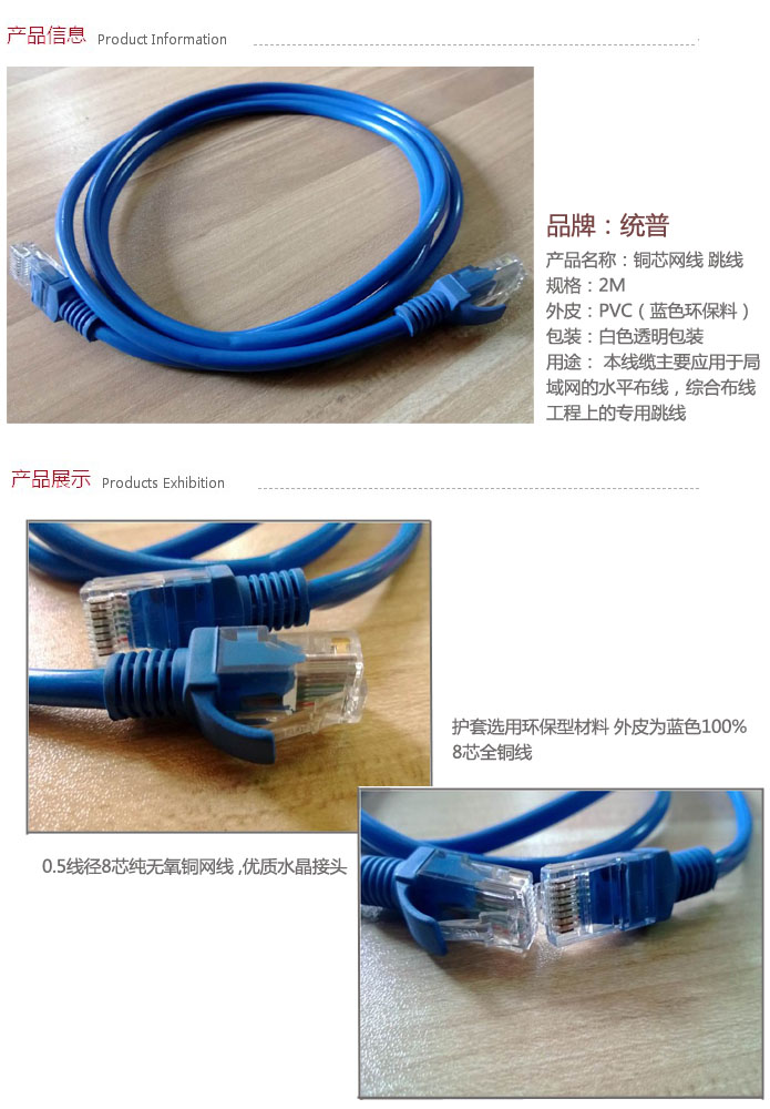 品名:统普 铜芯网线 2M