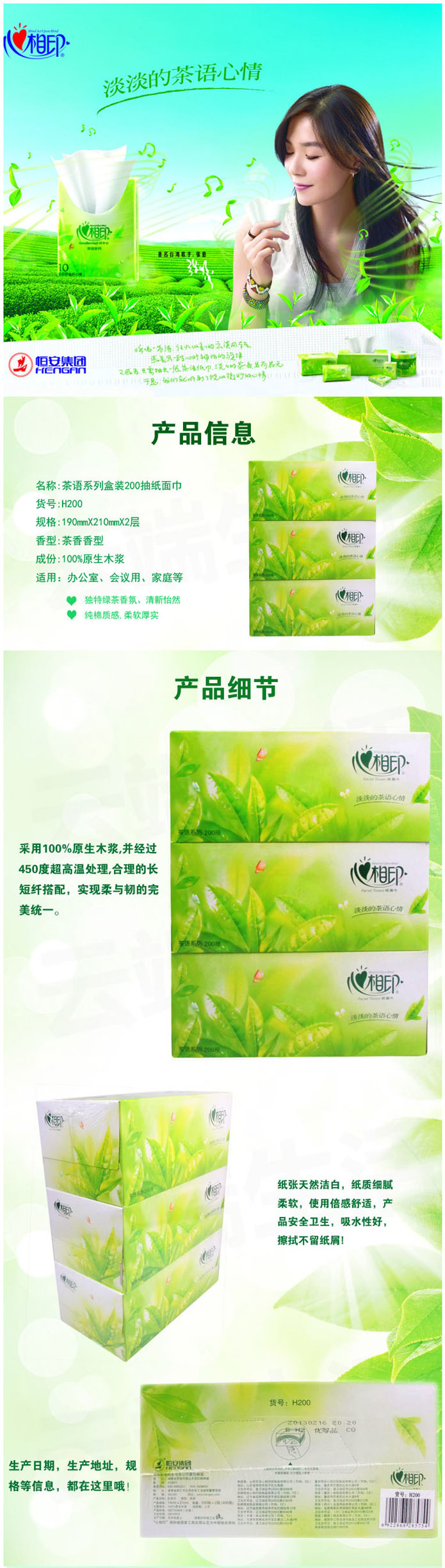 品名:心相印 茶语系列盒装面巾纸 200抽 3盒/提
