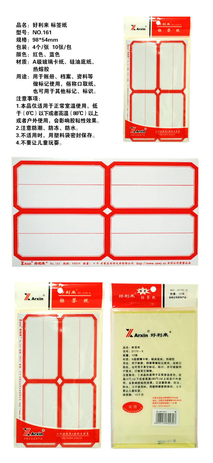 品名:亚信 好利来 标签纸 NO.161 98*54mm 4贴*10张