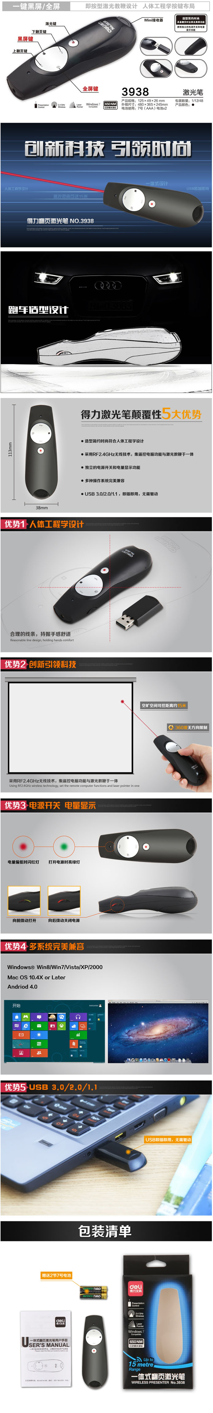 品名:得力(deli) 投影笔 3938 可翻页 一键黑屏/全屏