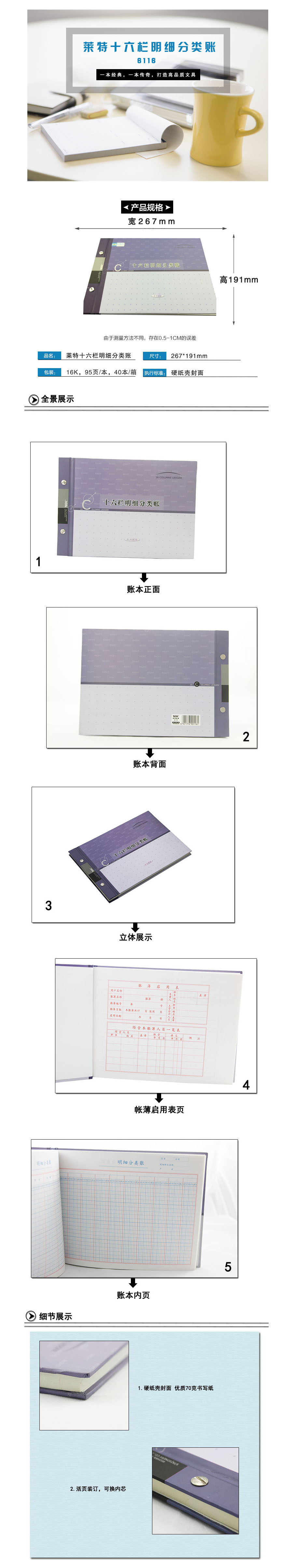 品名:莱特 十六栏明细分类账 6116 16K 267*191mm