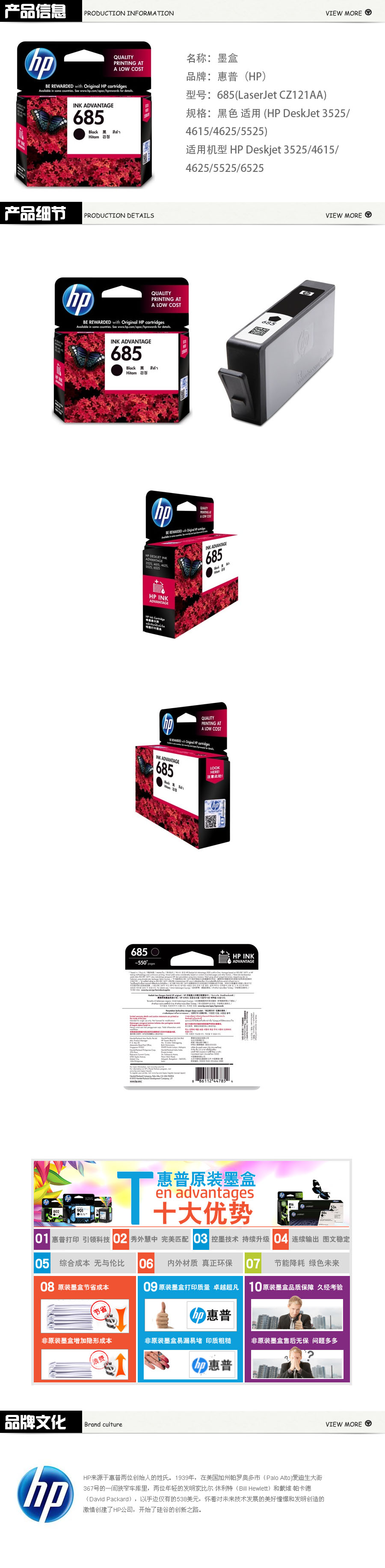 品名:惠普(HP) 墨盒 685(LaserJet CZ121AA) 适用 (HP DeskJet 3525/4615/4625/5...