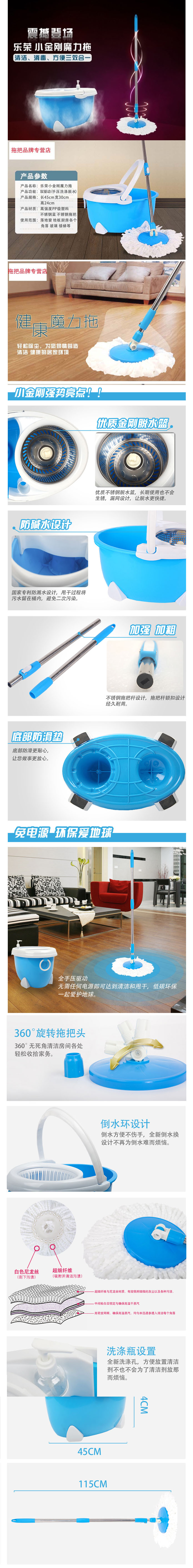 品名:乐荣 小金刚不锈钢魔力拖把套装 LR-002 旋转拖把桶 双驱动手压旋转拖把 ...