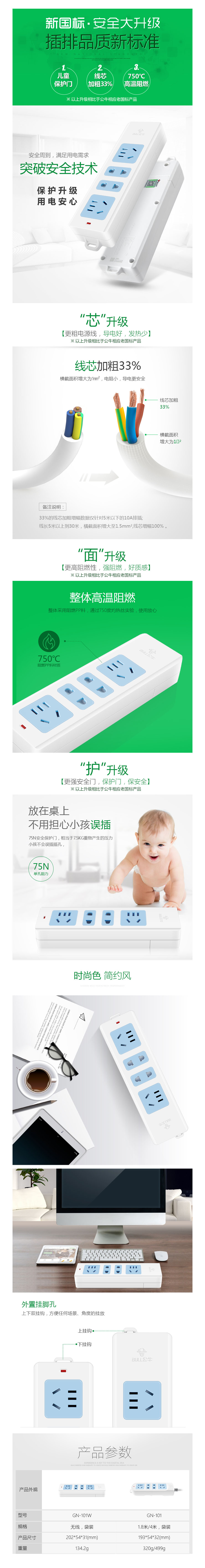 品名:公牛(BULL) 电源插座 GN-101 单排4孔 1.8m