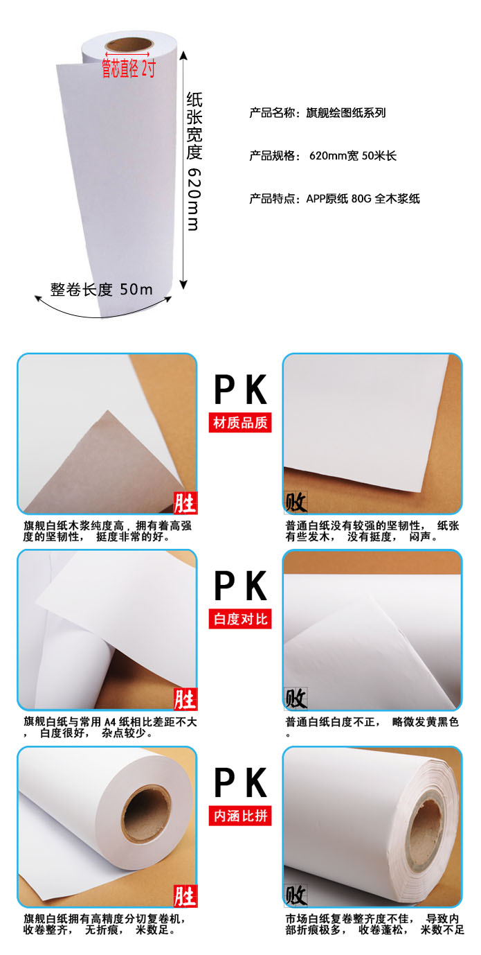 品名:旗舰 绘图纸 A1 620MM*50M 80G