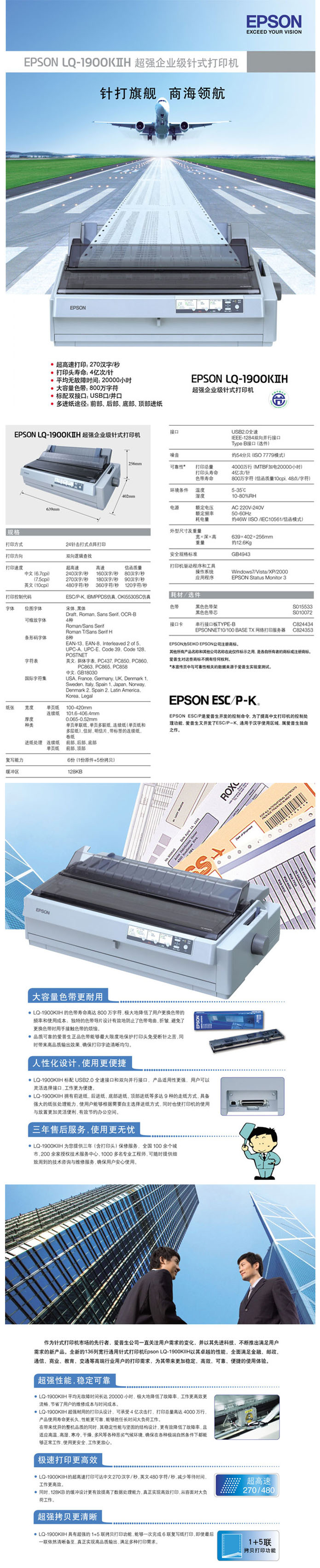 品名:爱普生(EPSON) 针式打印机 LQ-1900K2H A3 色带寿命:800万字符 240cps