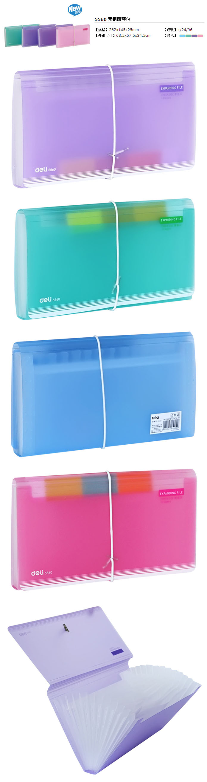 品名:得力(deli) 带索引标签票据包/风琴包 5560 262x145x25mm