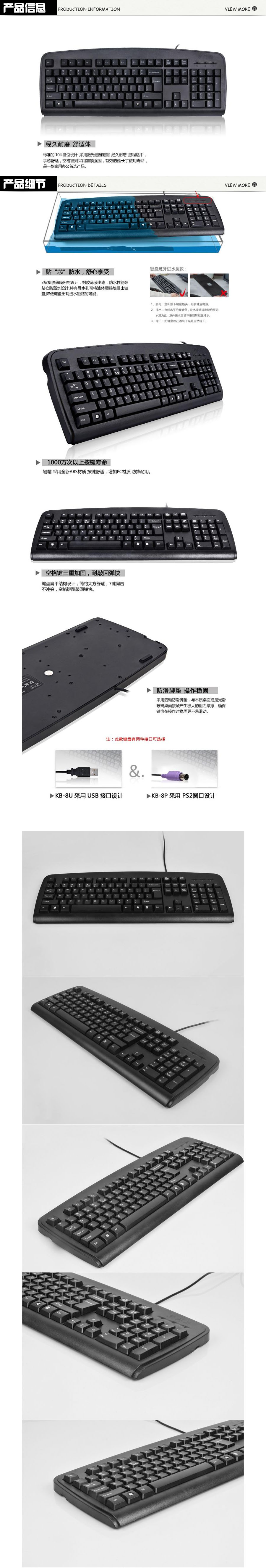 品名:双飞燕 防水静音键盘 USB接口 电脑键盘 办公用 黑色 KB-8 640*170*24mm