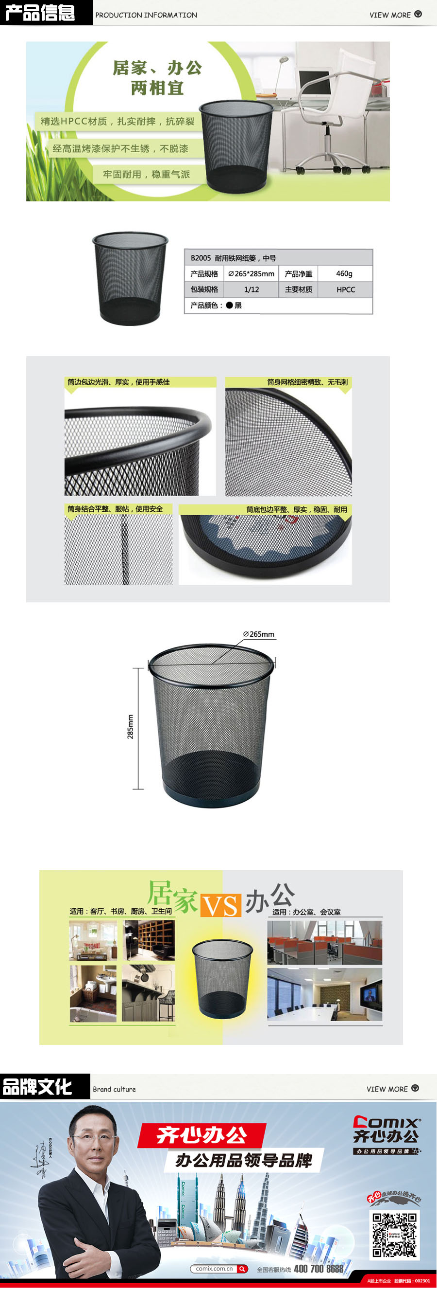 品名:齐心(Comix) 铁网圆纸篓 B2005 265*285mm