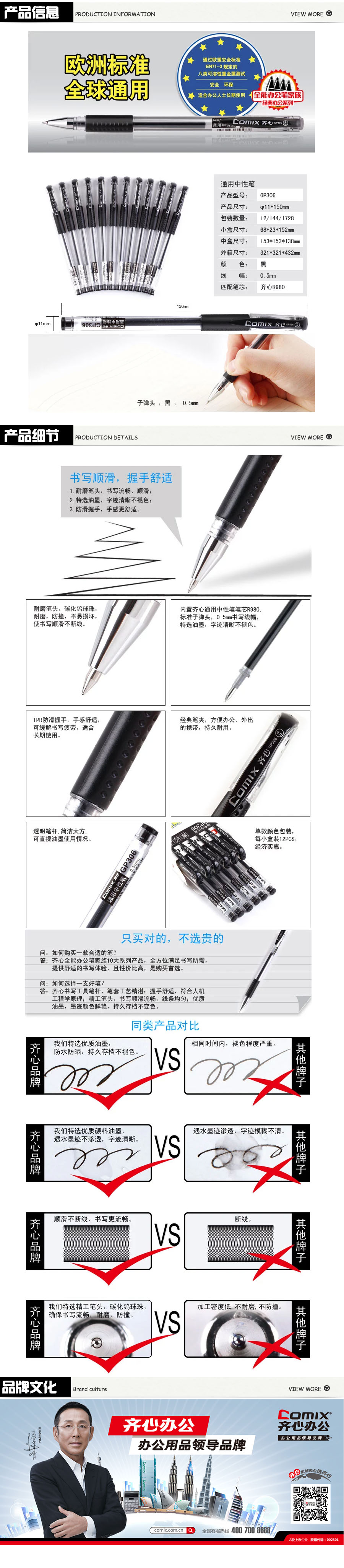 品名:齐心(COMIX) 经典商务中性笔 GP306 0.5mm 12支/盒 黑色