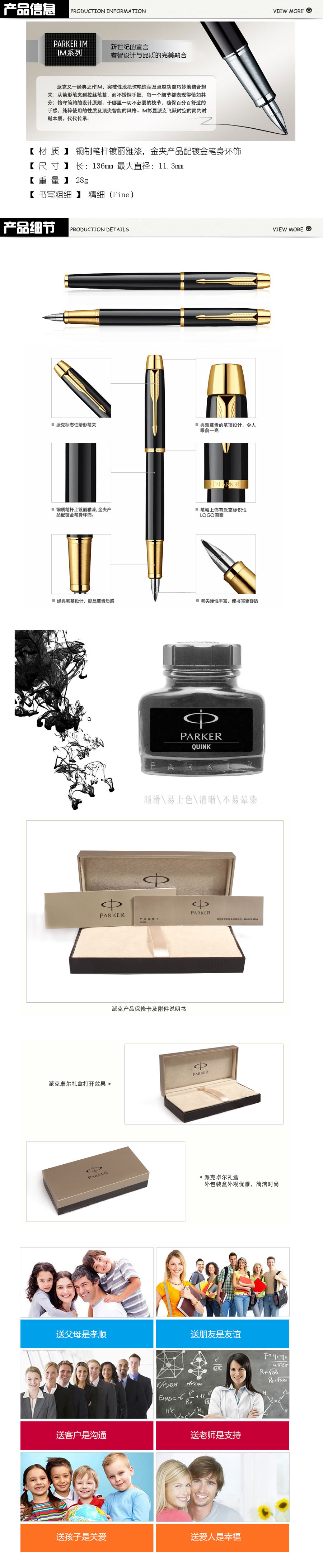 品名:派克 PARKER IM纯黑丽雅金夹 墨水笔 钢笔礼盒套装 笔+墨水+精品礼盒+礼袋