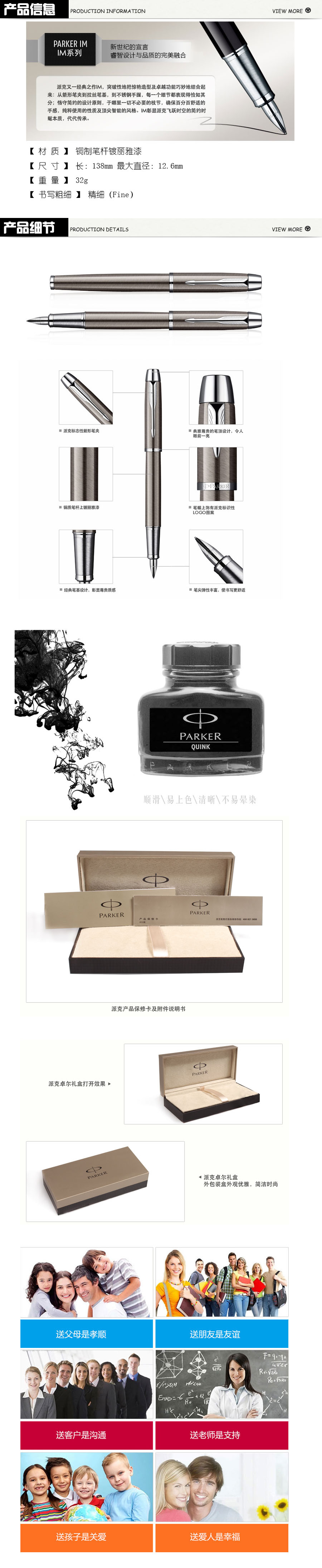 品名:派克 PARKER IM金属灰白夹墨水笔 钢笔礼盒套装 笔+墨水+精品礼盒+礼袋