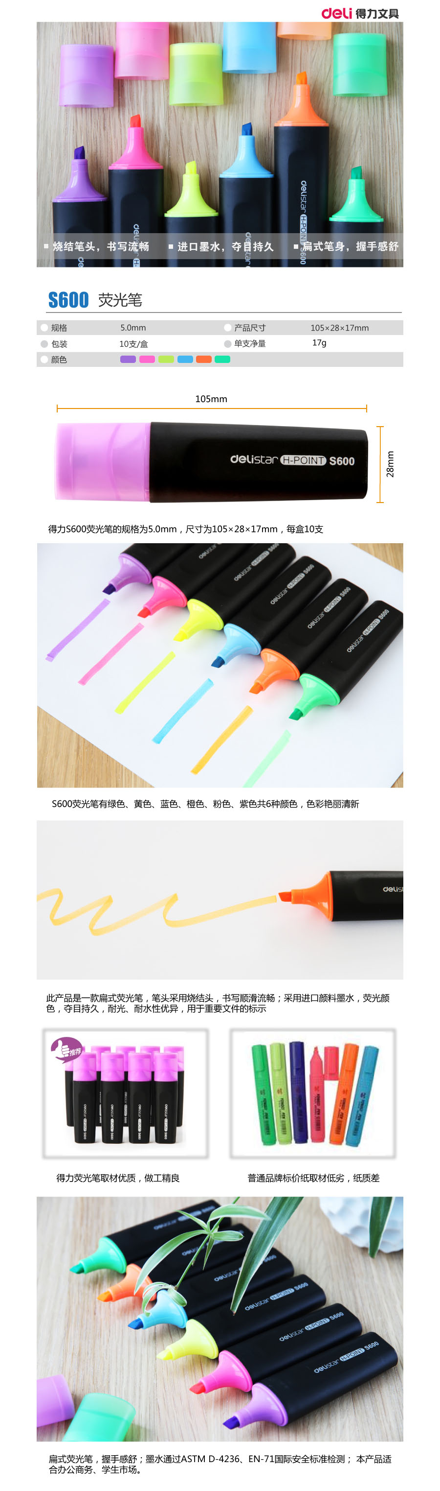 品名:得力 标记醒目荧光笔 黄色 S600 105*28*17mm