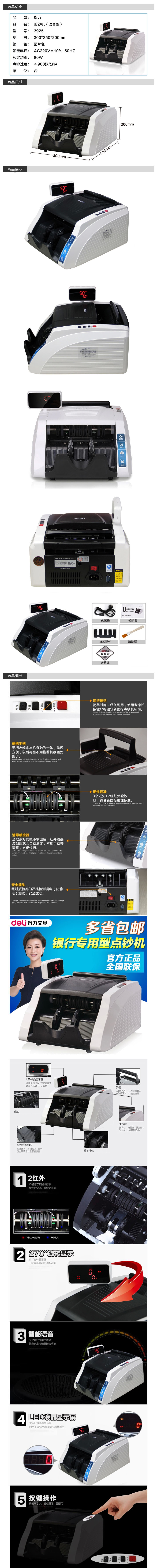 品名:得力(deli) 点钞机 3925 900张/分