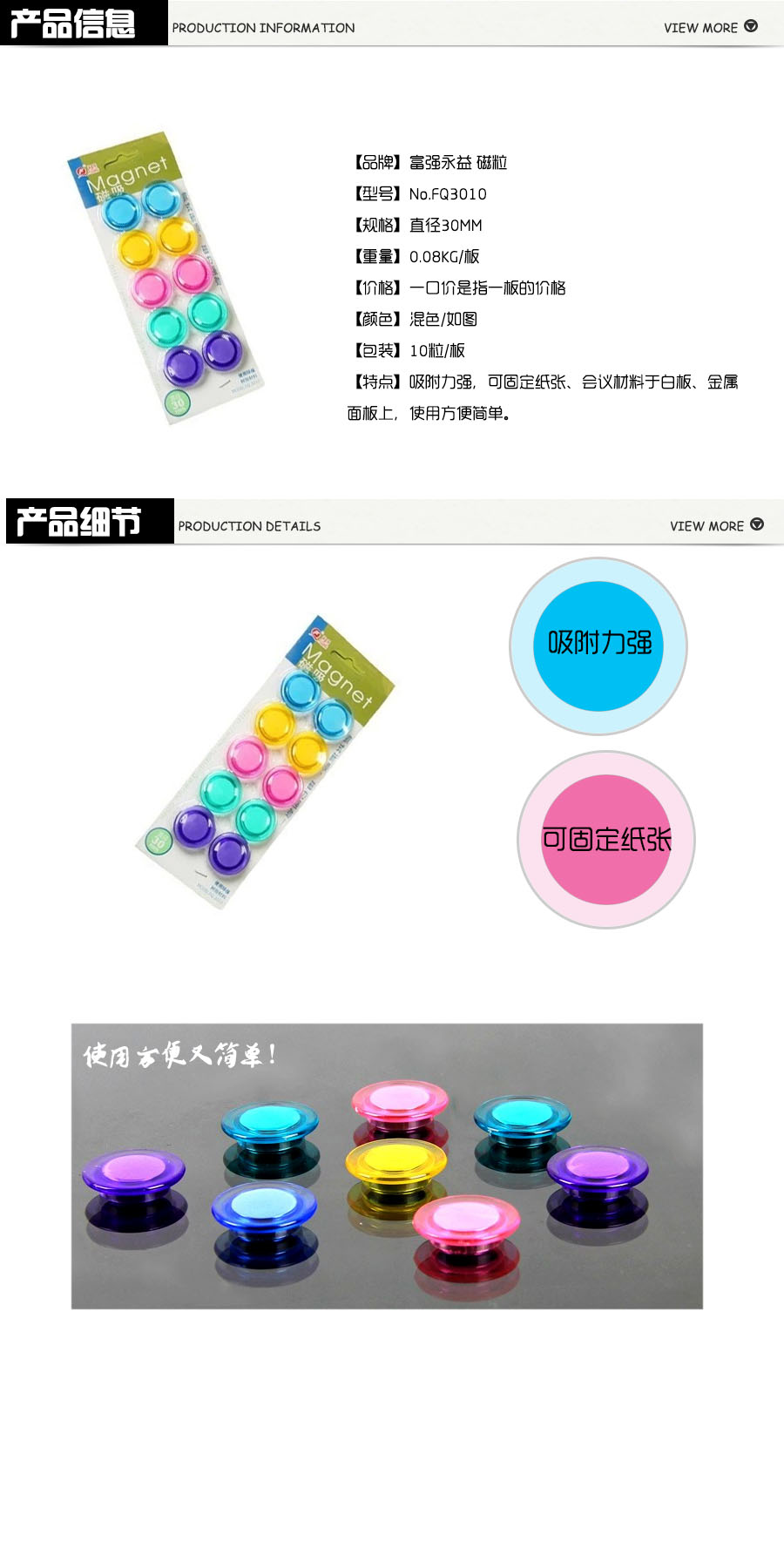 品名:富强 磁钉 FQ3010 直径30mm 10粒/板 透明硬胶+磁铁