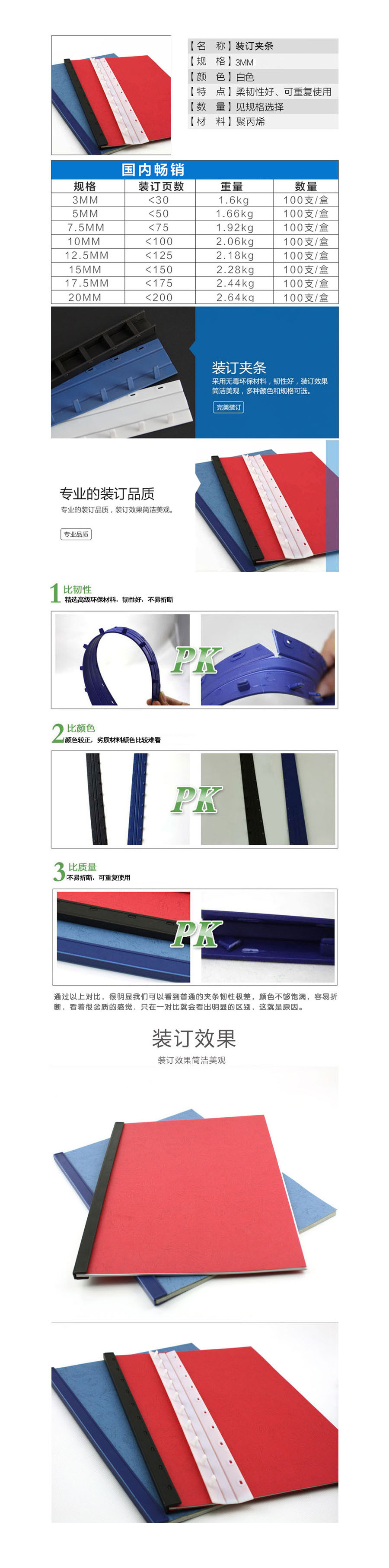 装订夹条 15mm 装订页数150页 50支/盒 黑色