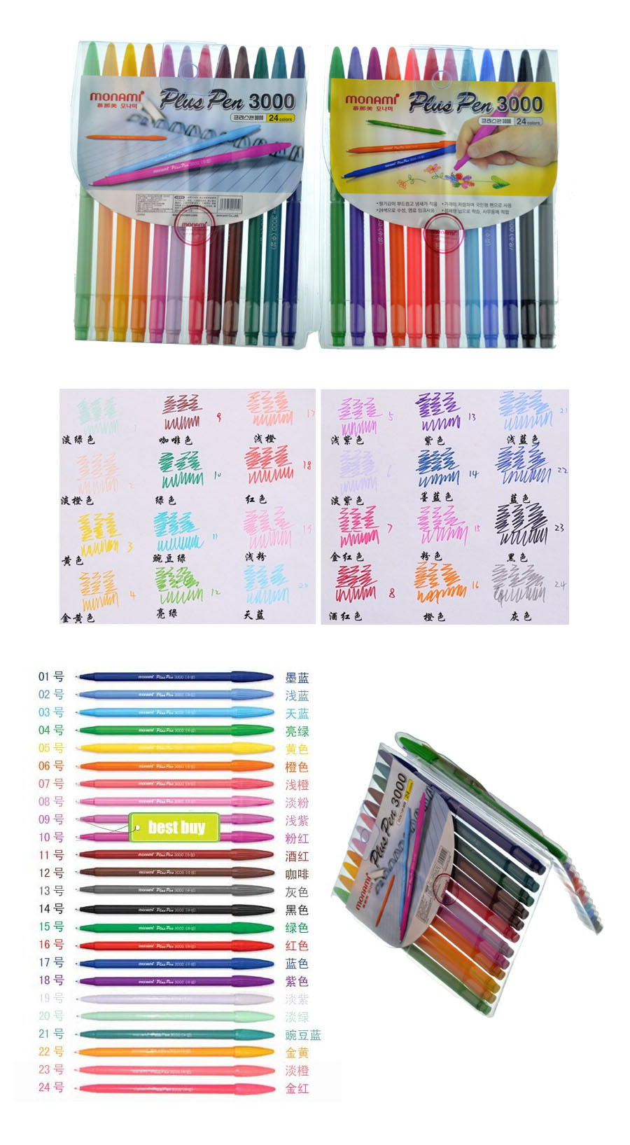 慕娜美(monami) 彩色水性笔 Plus Pen 3000 0.3mm...