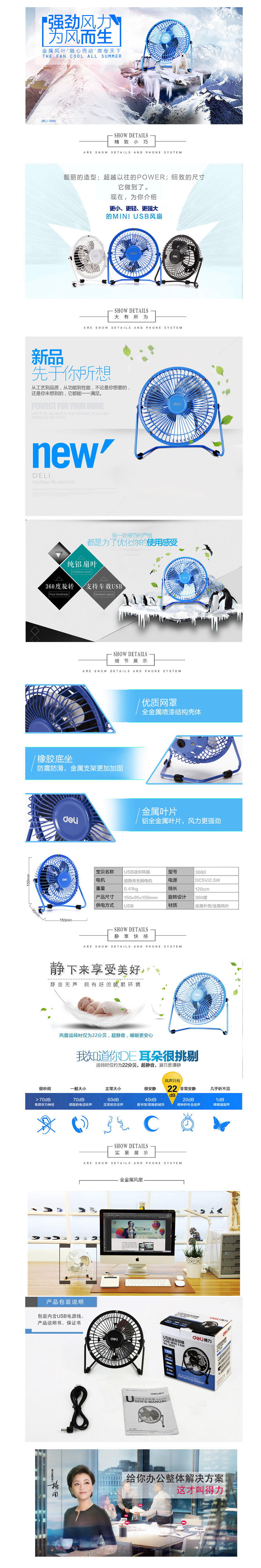 品名:得力(deli) USB风扇 3680 150﹡95﹡150mm 线长120mm 黑色迷你