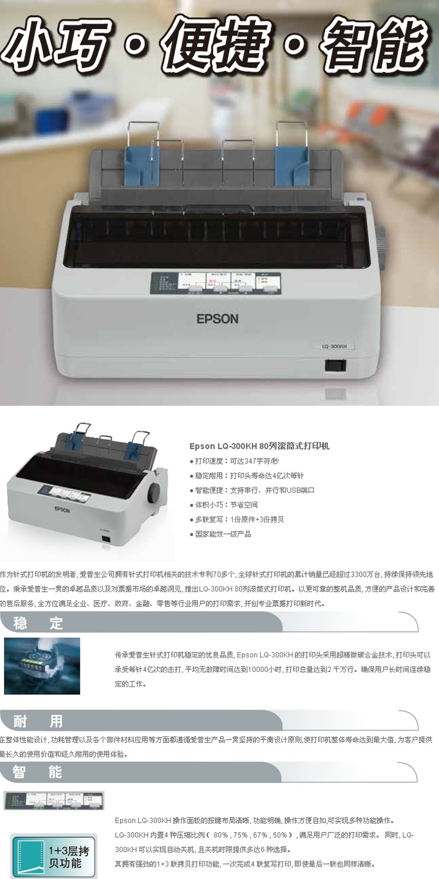 品名:爱普生(EPSON) 针式黑白打印机 LQ-300KH A4 24针 点阵式打印 80列