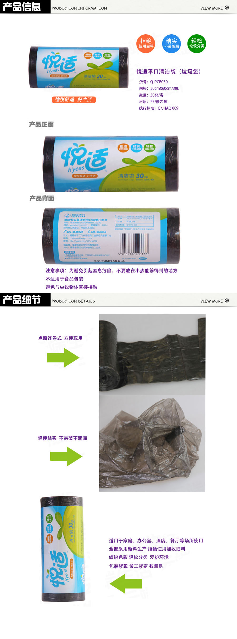 品名:心相印 悦适垃圾袋 QJPCB030 平口 PE/聚乙烯 50cm*60cm/30L 30只/卷