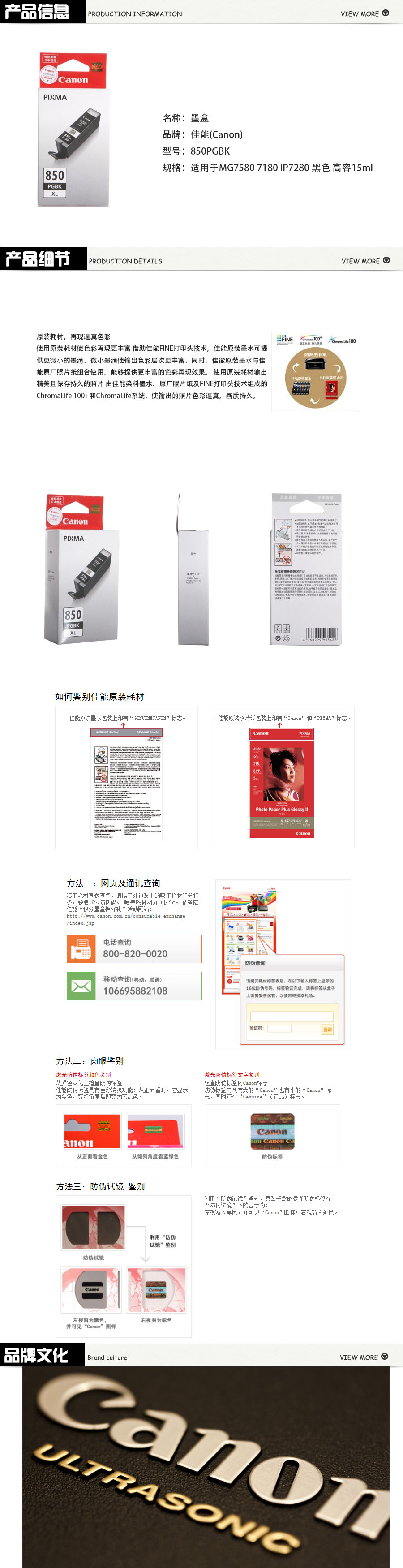 品名:佳能(Canon) 墨盒 850PGBK 适用于MG7580 7180 IP7280 黑色 高容15ml