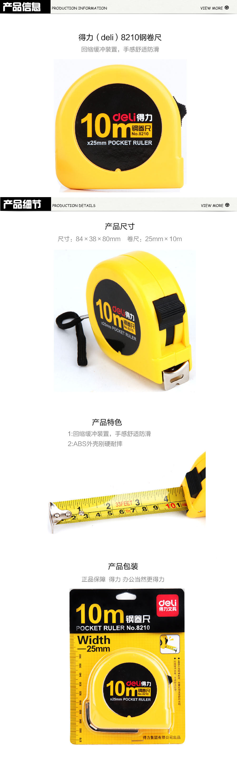 品名:得力(deli) 钢卷尺 8210 10米