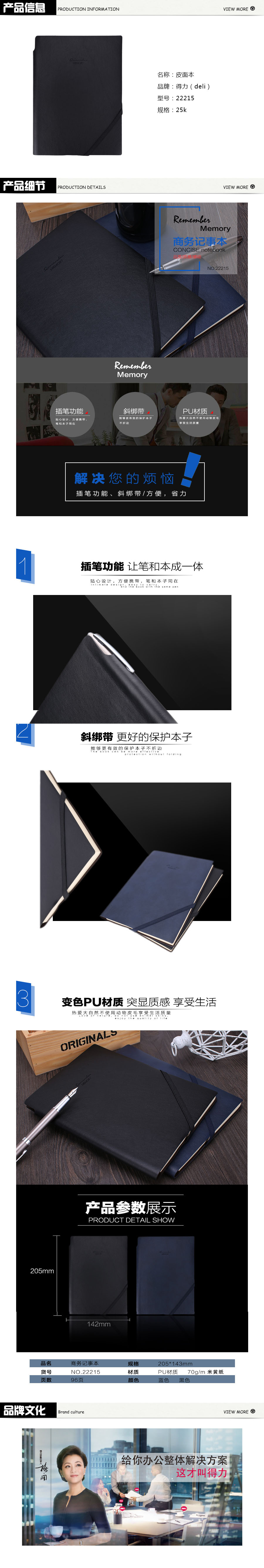 品名:得力(deli) 皮面记事本 22215 25K 96页 黑,蓝