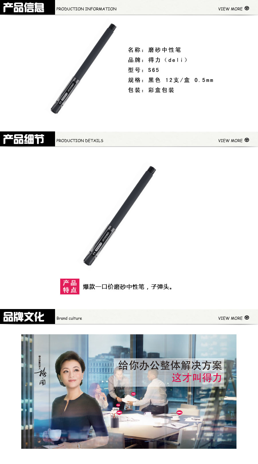 品名:得力(deli) 中性笔 S65 磨砂中性笔 0.5mm 黑色