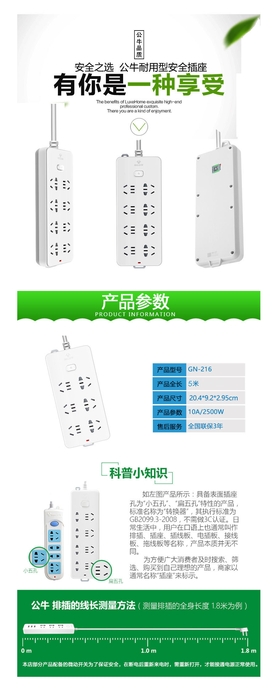 品名:公牛(BULL) 电源插座 GN-216 6孔插座 5米线