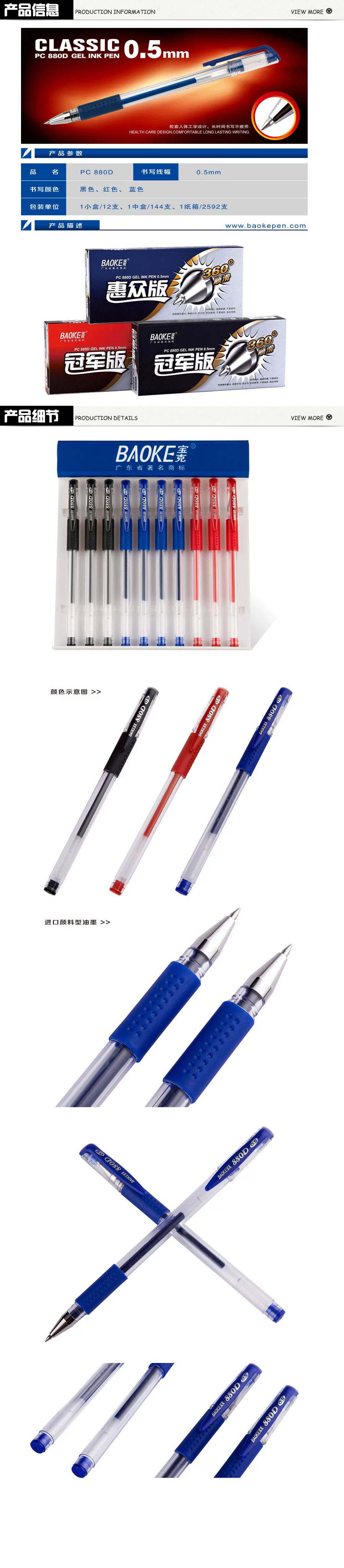 品名:宝克(BAOKE) 冠军版中性笔 PC 880D 0.5mm 12支/盒 蓝色