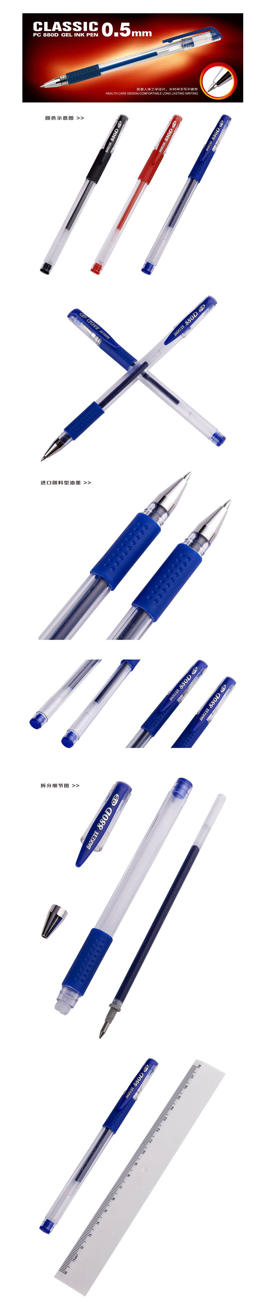 品名:宝克(BAOKE) 冠军版中性笔 880D 0.5mm 12支/盒 蓝色