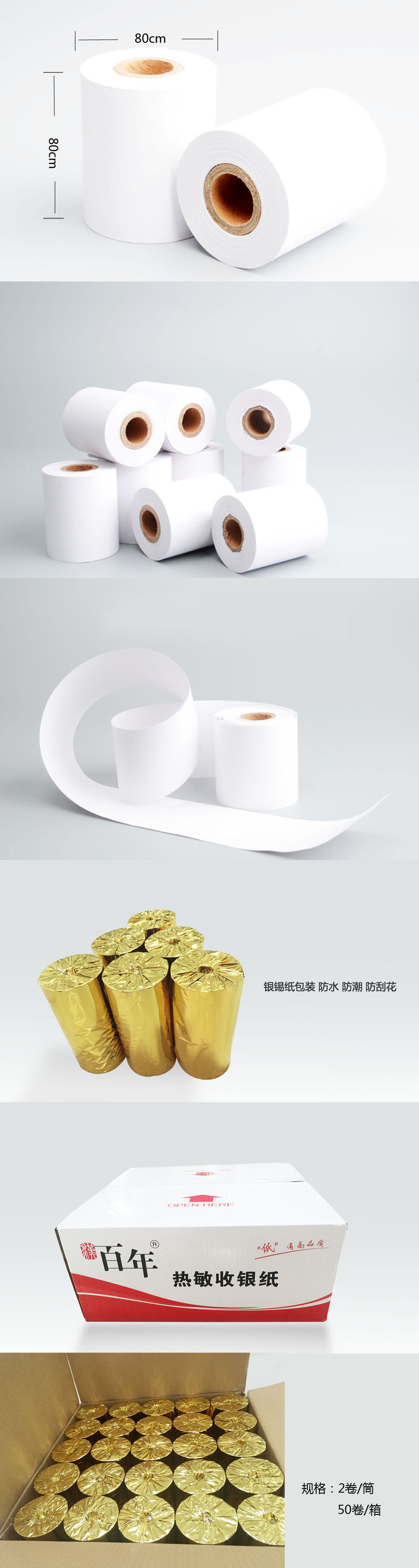 品名:百年 收银纸 80*80mm 50卷/箱