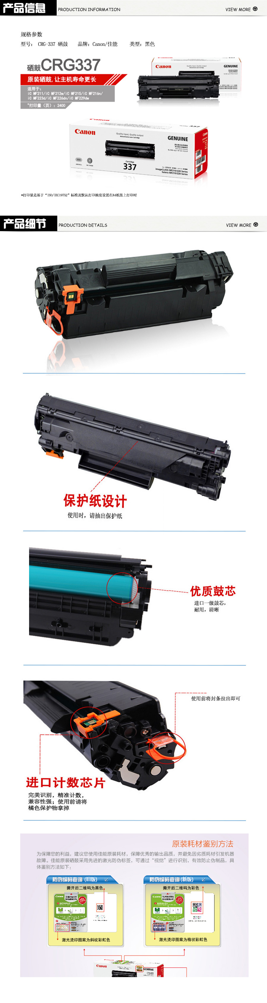 品名:佳能(Canon) 硒鼓 CRG 337 原装(适用于IC MF229dw/226dn/216n/215/223d/21...