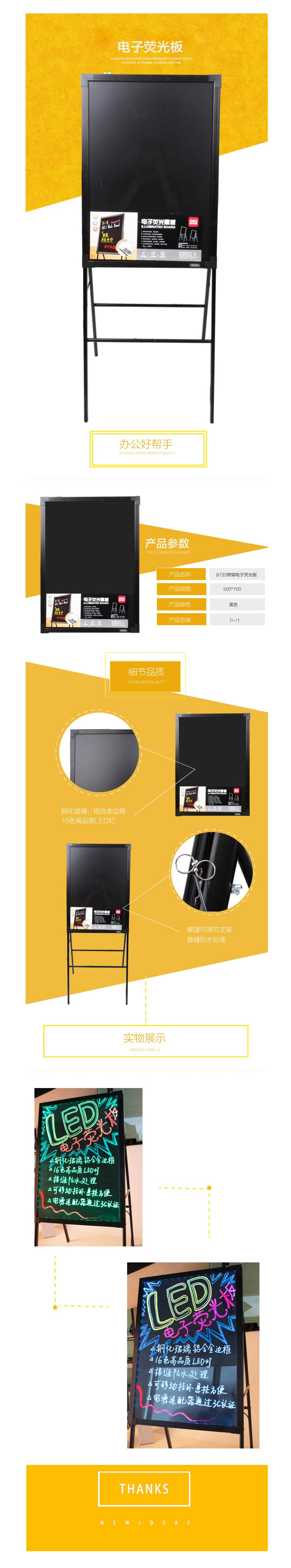 品名:得力(deli) 电子荧光黑板 8733 500*700mm 带脚架白板 电子白板