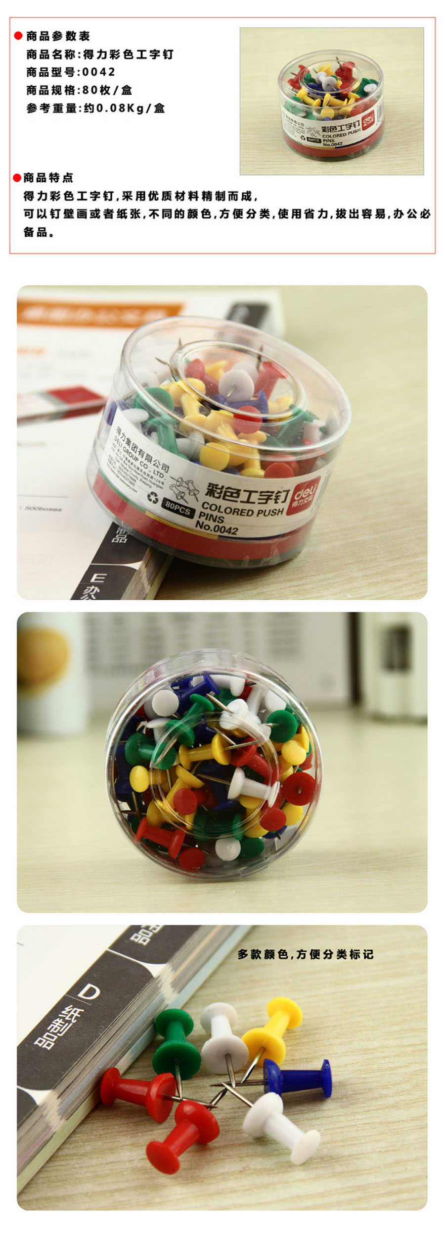 品名:得力(deli) 工字钉 0042 80枚/筒