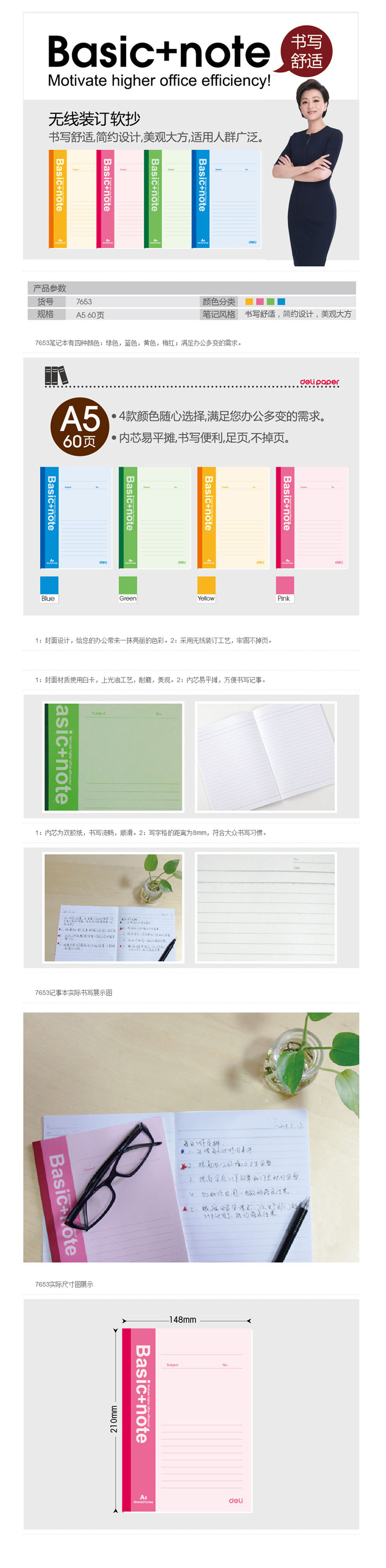 品名:得力(deli) 软抄本 7653 A5/60页