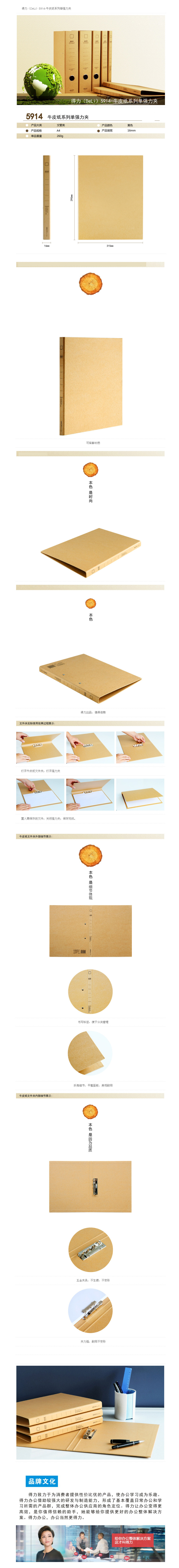品名:得力(deli) 文件夹 5914 290*210*16mm 牛皮纸系列