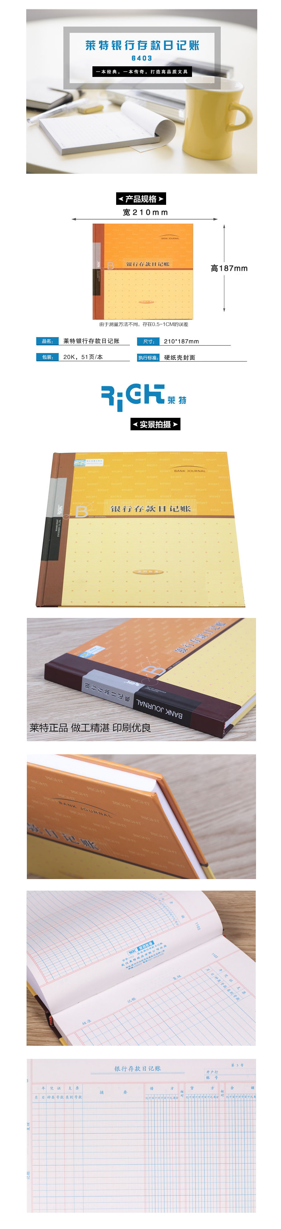 品名:莱特 银行存款日记账 6403 187*210mm 51页