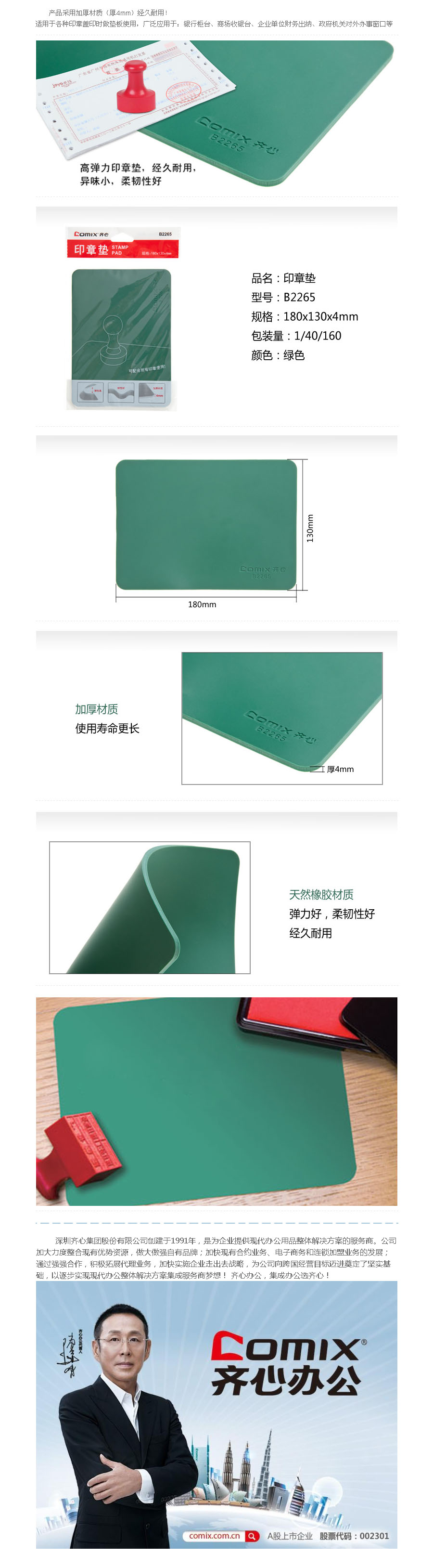 品名:齐心(Comix) 印章垫 B2265 180mm 绿色