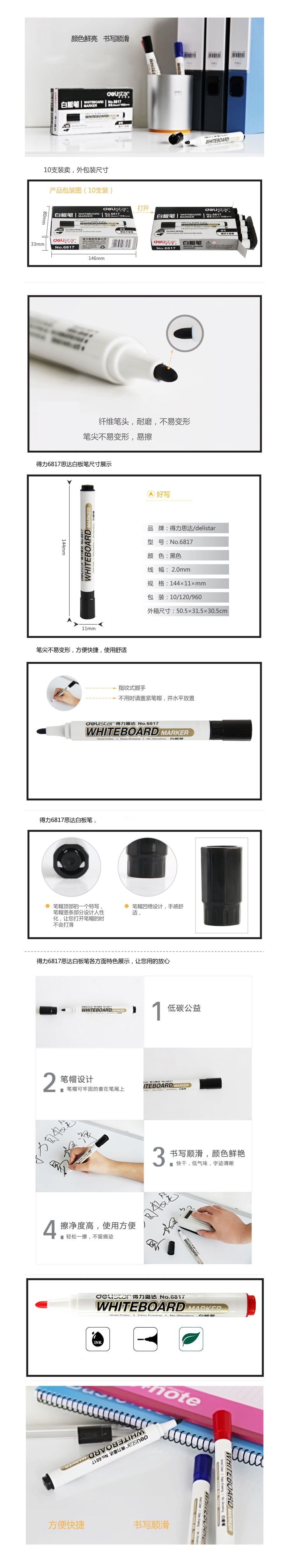 品名:得力(deli) 白板笔 6817 色泽明亮 易擦不留痕 蓝色